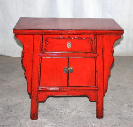 Chinese Antique Furniture 34CH064 Size: 33"L x 18"W x 31"H Red 2 Door Single Drawer Cabinet