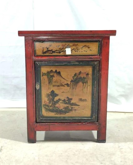 Chinese Antique Furniture 34CH003 Size: 30.5"L x 16"W x 38.5"H Painted 1 Door Single Drawer Cabinet