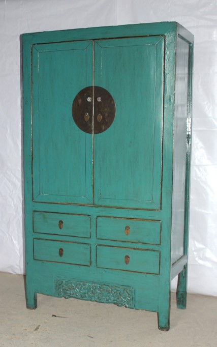 Chinese Antique Furniture 34CH089 Size: 45"L x 19"W x 74"H Green 2 Door 4 Drawer Noodle Cabinet