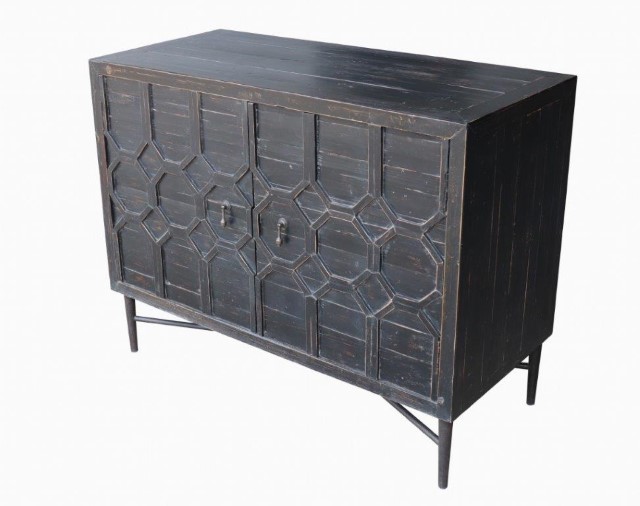 Reclaimed Pine 2 Door Black Cabinet With Metal Legs