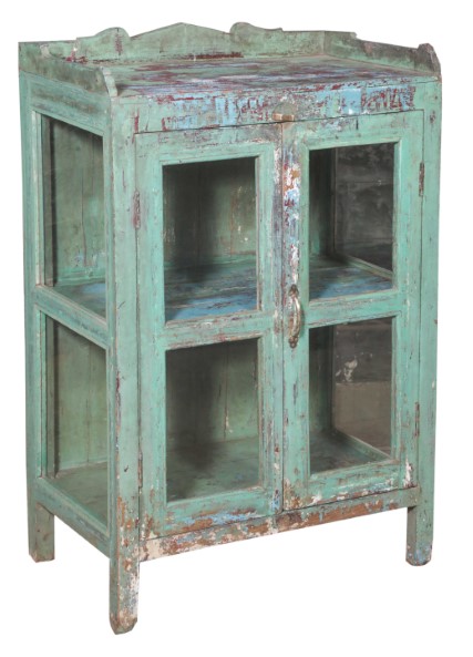 Indian Furniture 51INA037 Size: 28"L x 16"W x 42"H Green Teak Cabinet With 2 Doors